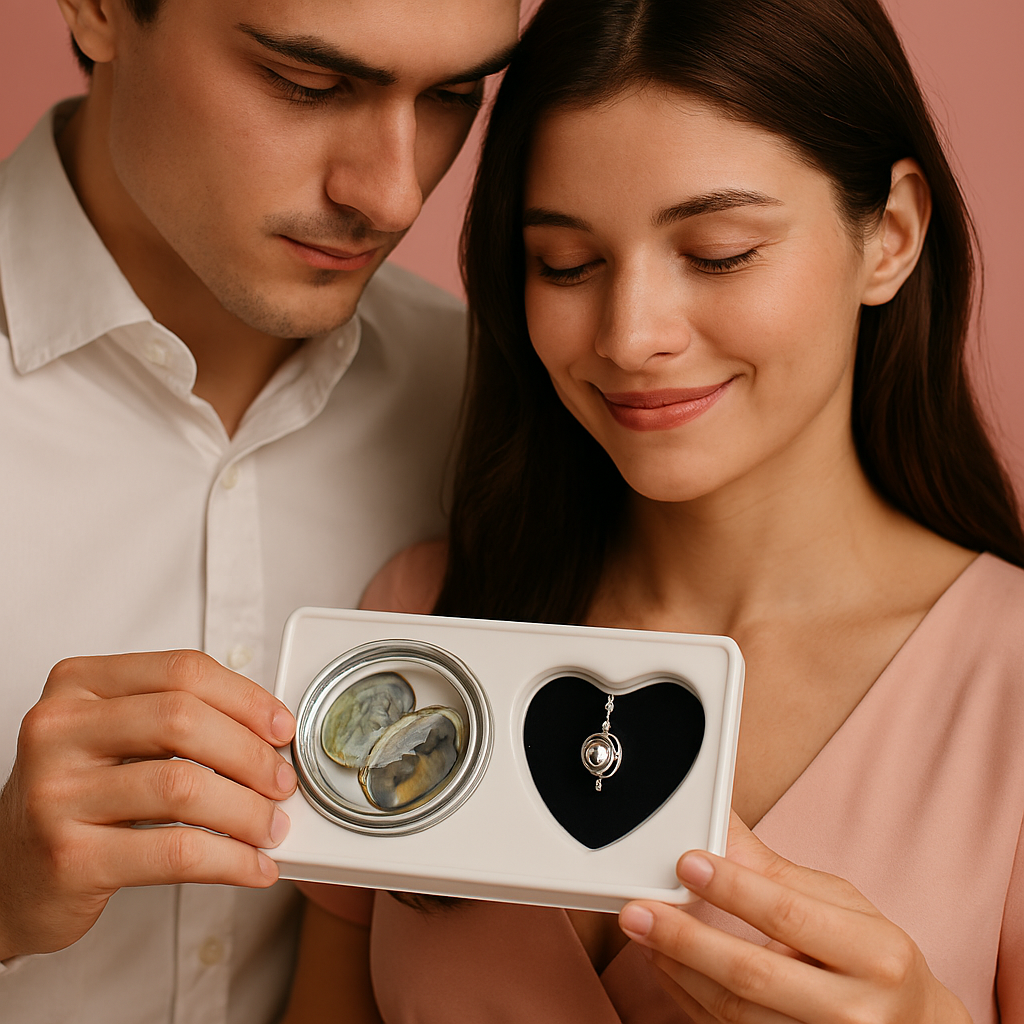 A refined moment of discovery, this freshwater pearl necklace unveils a naturally cultured pearl from an oyster shell, transforming surprise into timeless elegance. Designed as a meaningful expression of love, it’s a sophisticated choice for romantic gifting and modern luxury.